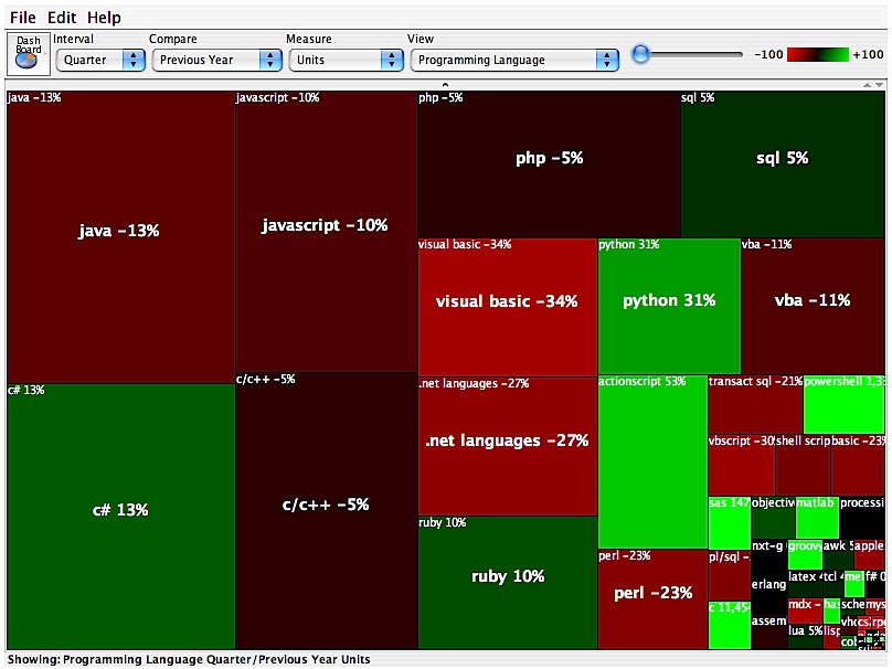 Uno de los blog que con más cariño sigo es el de http://radar.oreilly.com. , pues hace unos tiempo publicaron un post muy interesante sobre las posibles cuotas de uso de los lenguajes de programación.